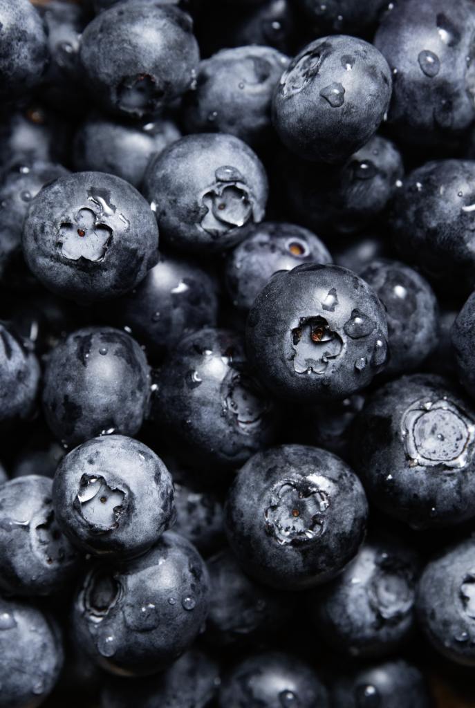 Press about 2/3 to 3/4 of this mixture into a greased 9″ x 13″ pan. Fill the pan to about 3/4 full with fresh blueberries. Set aside. Set aside the remaining crumble from the crust as well. You will use this as the crumb topping.