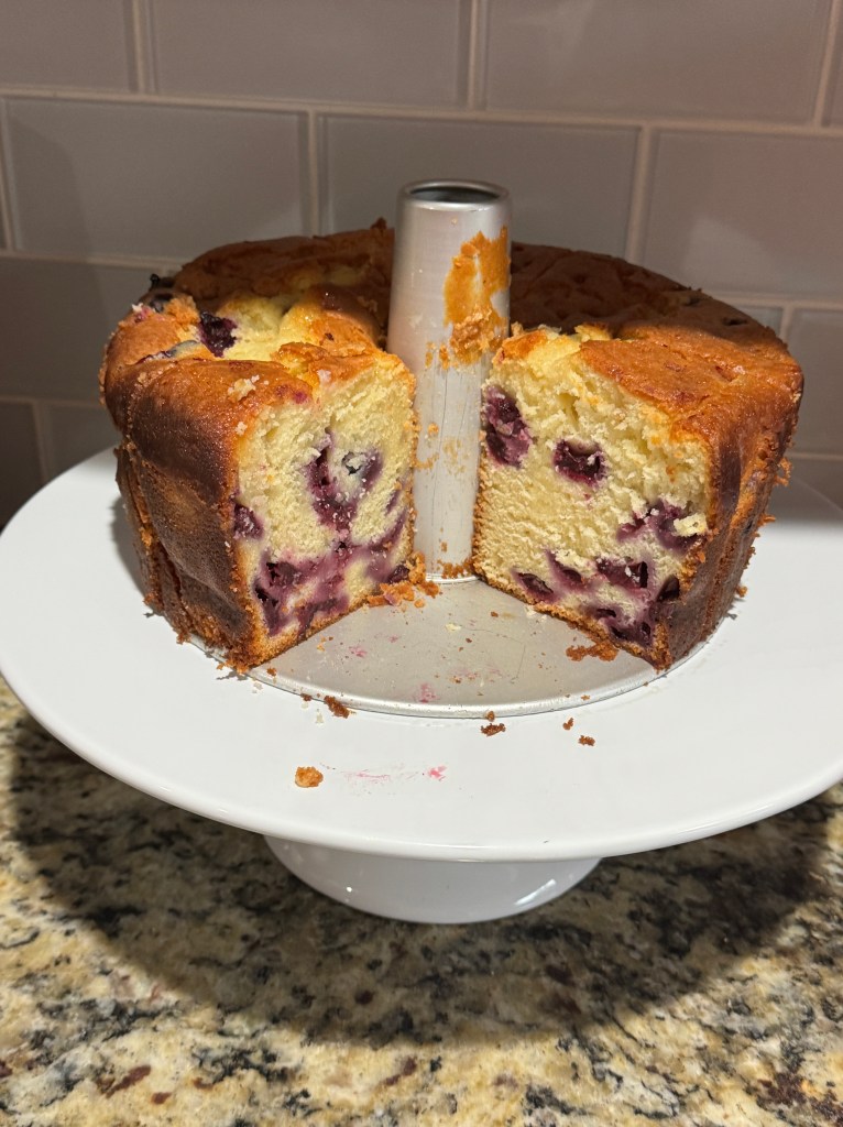 I have stirred in fresh blueberries in the tube pan batch and it is wonderful. I would guess that any fresh berry would be yummy.